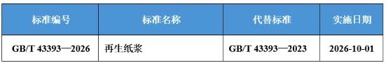近日,国家市场监督管理总局(国家标准化管理委员会)发布2026年第15号公告,批准发布《煤中全硫的测定方法》等303项推荐性国家标准和2项推荐性国家标准修改单,其中包括造纸领域国家标准《再生纸浆》,具体信息如下。