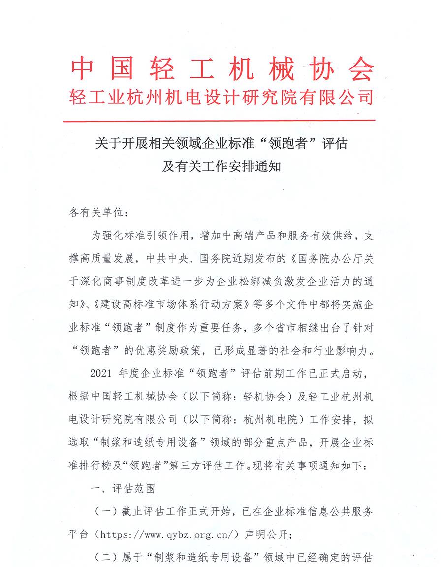 关于开展相关领域企业标准“领跑者”评估及有关工作的安排通知